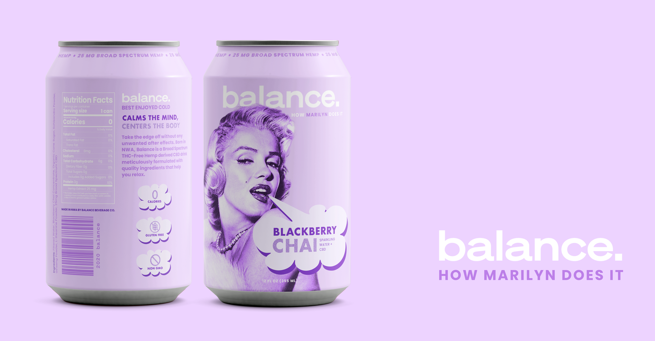visually graphic dominant packaging design and branding concept for a cbd infused beverage.
