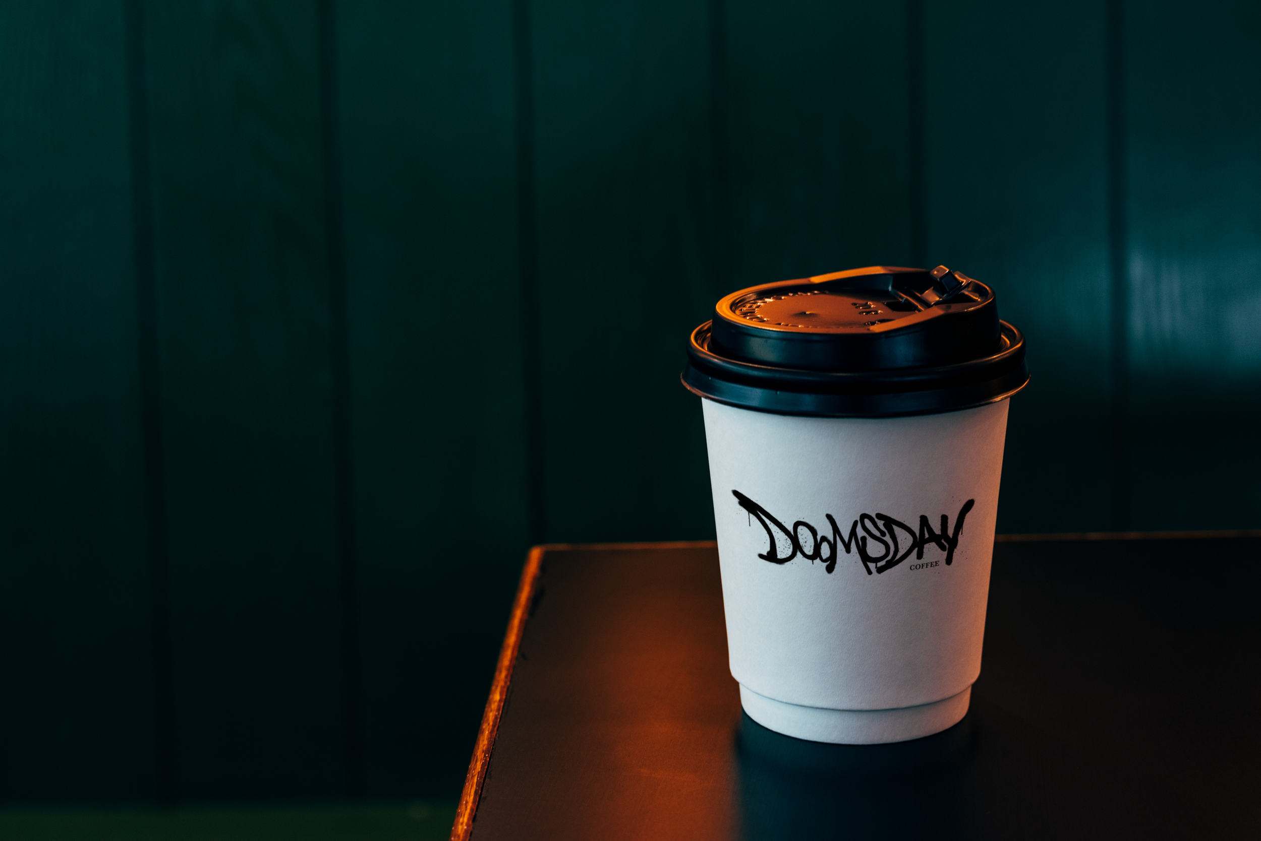 modernized logo complete with updated tagline, product packaging, and promotional assets. Doomsday Coffee