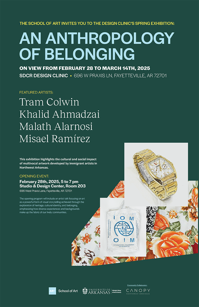 marketing kits for artist visiting the University of Arkansas.
